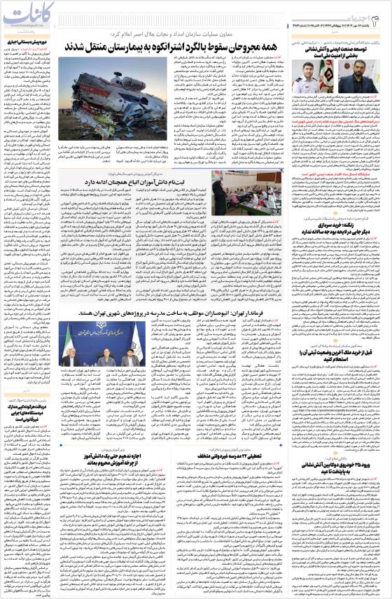 همه مجروحان سقوط بالگرد اشترانکوه به بیمارستان منتقل شدندثبت‌نام دانش‌آموزان اتباع همچنان ادامه داردفرماندار تهران: انبوه‌سازان موظف به ساخت مدرسه در پروژه‌های شهری تهران هستندتعطیلی ۲۲ مدرسه غیردولتی متخلفاجازه ندهیم حتی یک دانش‌آموز