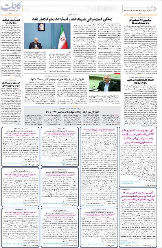 ممکن است برخی شبها فشار آب تا حد صفر کاهش یابد