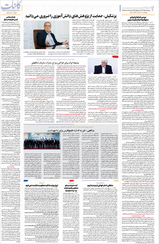 پزشکیان: حمایت از پژوهش‌های دانش‌آموزی را ضروری می‌دانیم پیشنهاد ایران برای طراحی رمز ارز مشترک سازمان شانگهایعراقچی: خزر به اندازه خلیج‌فارس برای ما مهم استمشکلی با عذرخواهی از مردم نداریم