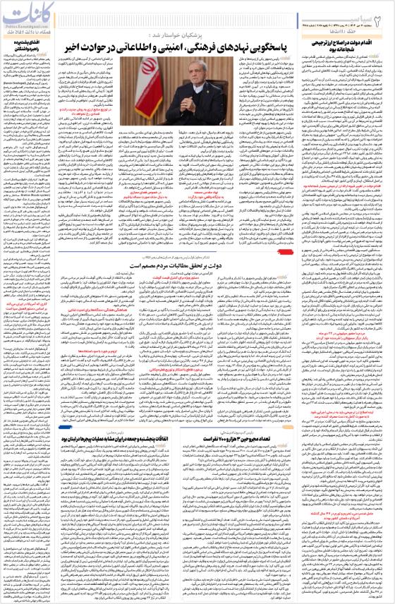 پاسخگویی نهادهای فرهنگی، امنیتی و اطلاعاتی در حوادث اخیردولت بر تحقق مطالبات مردم مصمم استتعداد مجروحین ۳ هزار و ۷۰۰ نفر است اتفاقات پنجشنبه و جمعه در ایران مشابه عملیات پیجرها در لبنان بود اقدام دولت در اصلاح ارز ترجیحی