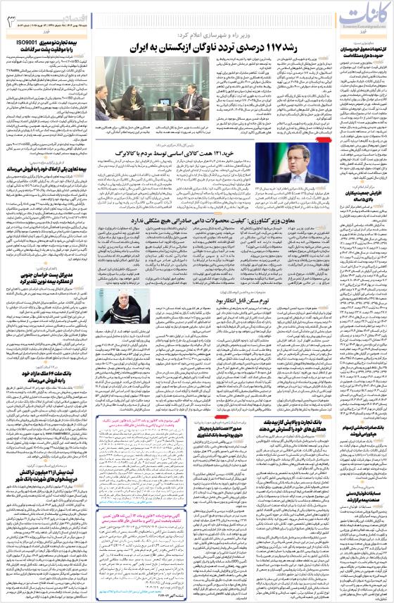 رشد ۱۱۷ درصدی تردد ناوگان ازبکستان به ایران  خرید ۱۲۱ همت کالای اساسی توسط مردم با کالابرگ معاون وزیر کشاورزی: کیفیت محصولات دامی صادراتی هیچ مشکلی نداردتورم مسکن قابل انتظار بودهمکاری‌های خود را گسترش می‌دهندصدور ۱۳ همت اعتبار دیجیتال