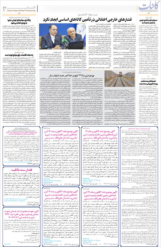 فشارهای خارجی اختلالی در تأمین کالاهای اساسی ایجاد نکردبهره‌برداری از ۳۲۵ کیلومتر خط آهن جدید تا پایان سالمسئولیت قیمت‌گذاری خودرو