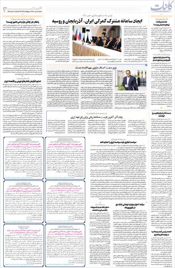 ایجاد سامانه مشترک گمرکی ایران، آذربایجان و روسیهوزیر صمت: اصناف بازوی مهم اقتصاد هستندپایان آذر، آخرین فرصت مصالحه ریالی برای رفع تعهد ارزیسیاست تجاری باید سیاست ارزی را حمایت کنددرآمد ۴ هزار میلیارد تومانی بانک دی