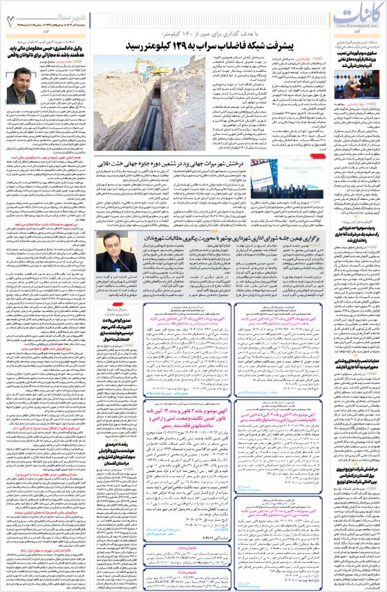 پیشرفت شبکه فاضلاب سراب به ۱۲۹ کیلومتر رسید  درخشش شهر میراث جهانی یزد در ششمین دوره جایزه جهانی خشت طلاییبرگزاری نهمین جلسه شورای اداری شهرداری بوشهر با محوریت پیگیری مطالبات شهروندانمدیرکل ثبت احوال
