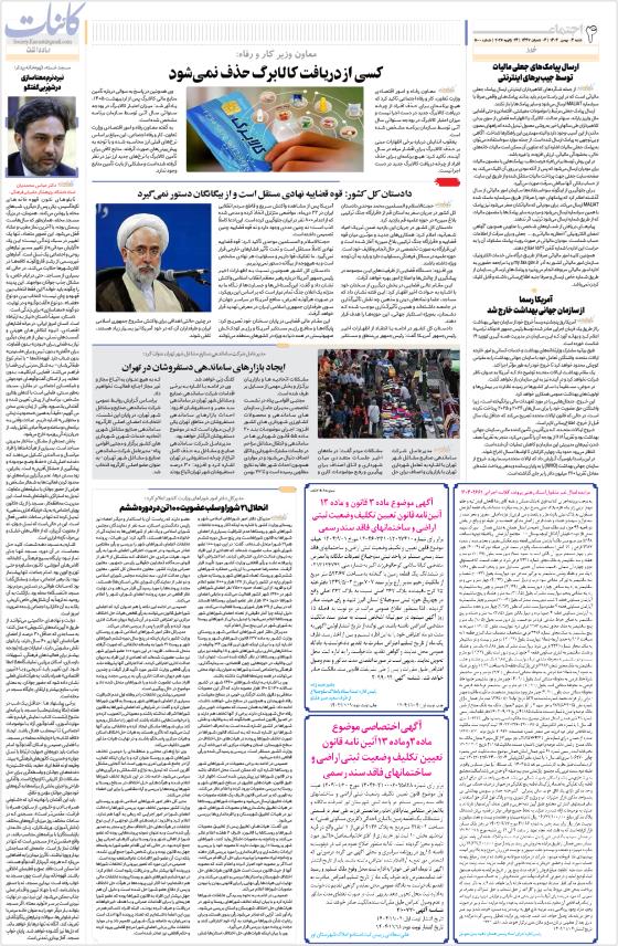 کسی از دریافت کالابرگ حذف نمی‌شودقوه قضاییه نهادی مستقل است و از بیگانگان دستور نمی‌گیردایجاد بازارهای ساماندهی دستفروشان در تهرانانحلال ۲۱ شورا و سلب عضویت ۱۰۰ تن در دوره ششمارسال پیامک‌های جعلی مالیات