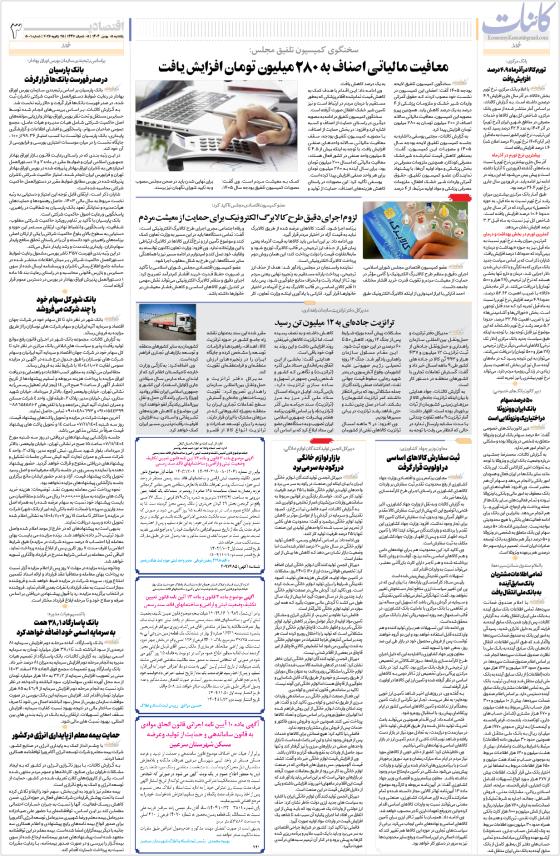 معافیت مالیاتی اصناف به ۲۸۰ میلیون تومان افزایش یافتلزوم اجرای دقیق طرح کالابرگ الکترونیک برای حمایت از معیشت مردمترانزیت جاده‌ای به ۱۲ میلیون تن رسیدثبت سفارش کالاهای اساسی