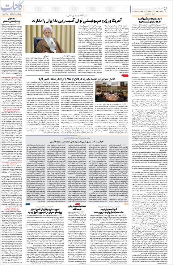 آمریکا و رژیم صهیونیستی توان آسیب زدن به ایران را ندارند فاضل لنکرانی: روحانیت یکپارچه در دفاع از نظام و ایران در صحنه حضور دارد افزایش ۲۸ درصدی ثبت‌نام نامزدهای انتخابات، معجزه استآمریکا به دنبال ایجاد