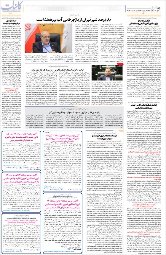 80 درصد شهر تهران از بازچرخانی آب بهرهمند است