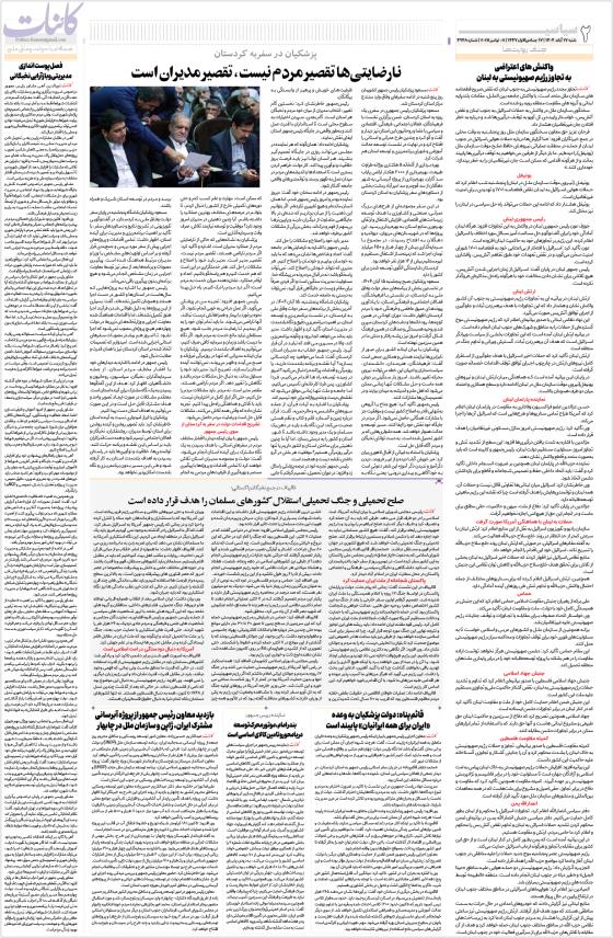 نارضایتی‌ها تقصیر مردم نیست، تقصیر مدیران استصلح تحمیلی و جنگ تحمیلی استقلال کشورهای مسلمان را هدف قرار داده است«ایران برای همه ایرانیان» پایبند است بندر امام، موتور محرک توسعه دریامحور و تامین کالای اساسی است بازدید معاون رئیس جمهور از پروژه آبرسانی مشترک ایران، ژاپن و سازمان ملل در چابهار واکنش های اعتراضی