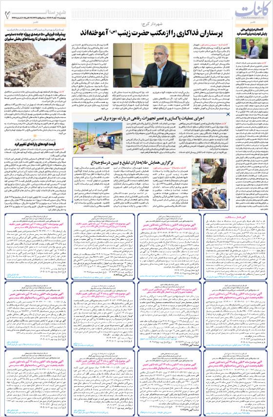پرستاران فداکاری را ازمکتب حضرت زینب (س) آموخته‌انداجرای عملیات پاكسازی و تعمیر تجهیزات رفاهی در پارك موزه برق تمبیبرگزاری همایش طلایه‌داران تبلیغ و تبیین درساوجبلاغگلستان در ارزیابی ملی