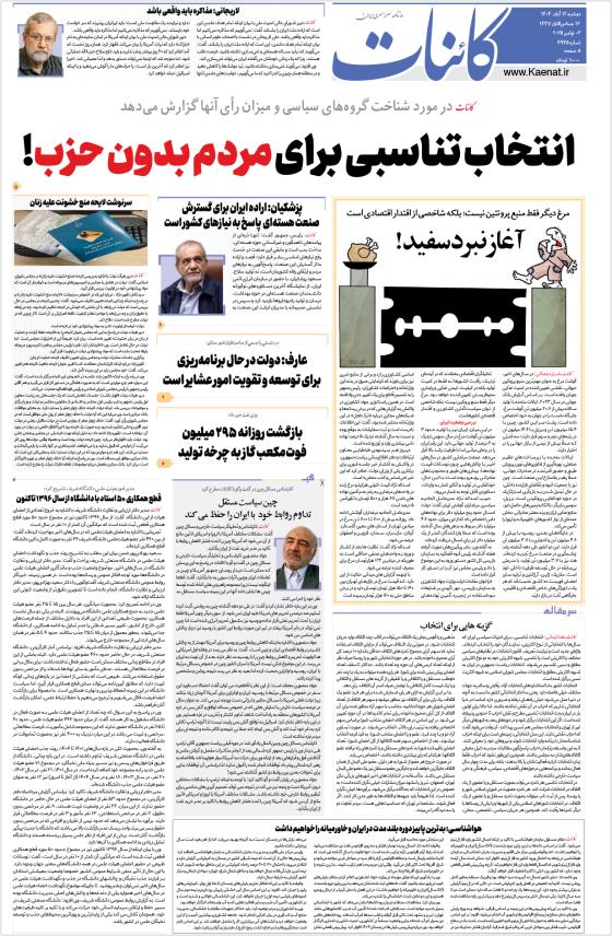 لاریجانی: مذاکره باید واقعی باشدانتخاب تناسبی برای مردم بدون حزب!آغاز نبرد سفید!پزشکیان: اراده ایران برای گسترش
