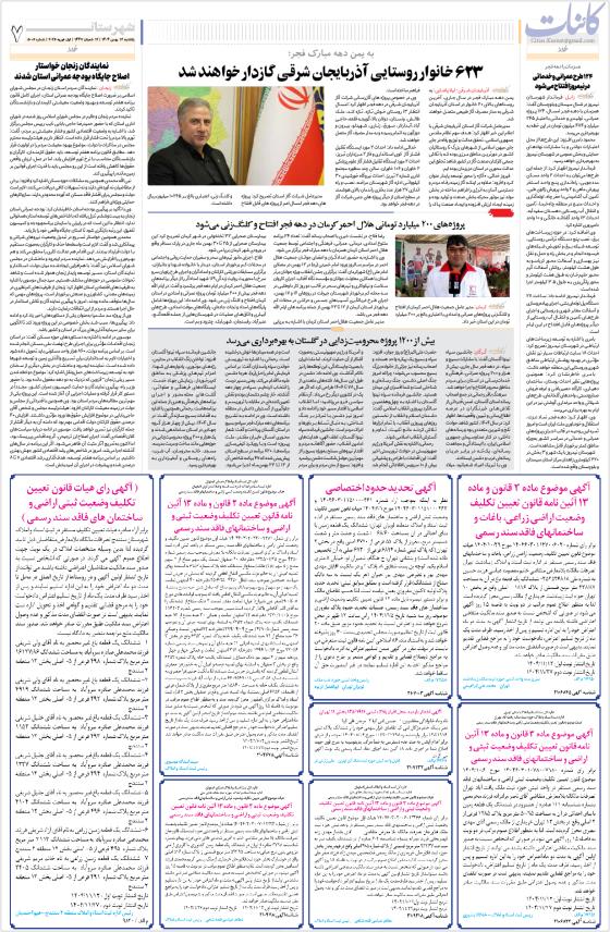 ۶۲۳ خانوار روستایی آذربایجان شرقی گازدار خواهند شدپروژه‌های ۲۰۰ میلیارد تومانی هلال احمر کرمان در دهه فجر افتتاح و کلنگ‌زنی می‌شودبیش از ۱۲۰۰ پروژه محرومیت‌زدایی در گلستان به بهره‌برداری می‌رسدهمزمان با دهه فجر
