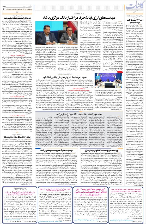 سیاست‌های ارزی نباید صرفاً در اختیار بانک مرکزی باشد مدیریت هزینه و زمان در پروژه‌های ملی ارتباطی لحاظ شودمعاون وزیر اقتصاد:  دولت سیاست ثبات بازار را دنبال می‌کند واردات ۵۸ هزار و ۹۴۵ دستگاه خودرو در سال جاریدو عضو جدید هیأت مدیره بانک سپه معرفی شدندرشد ۳/۱۴ درصدی نرخ تورم