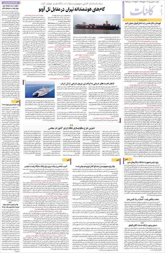 گام‌های هوشمندانه تهران  در مقابل تل آویو اذعان قدرت‌های دریایی به ابرقدرتی نیروی دریایی ارتش ایران تدوین طرح مقاوم‌سازی نظام ارزی کشور در مجلسرفتار رژیم صهیونیستی مصداق کامل تروریسم دولتی استآسیب شناسی و برنامه ریزی برای ارتقاء جایگاه ریاست مجلس قهرمانان دفاع مقدس را به دانش‌آموزان معرفی کنیم تحقق ۸۰ درصد از اهداف طرح جهش تولید در دیمزارهای کشور